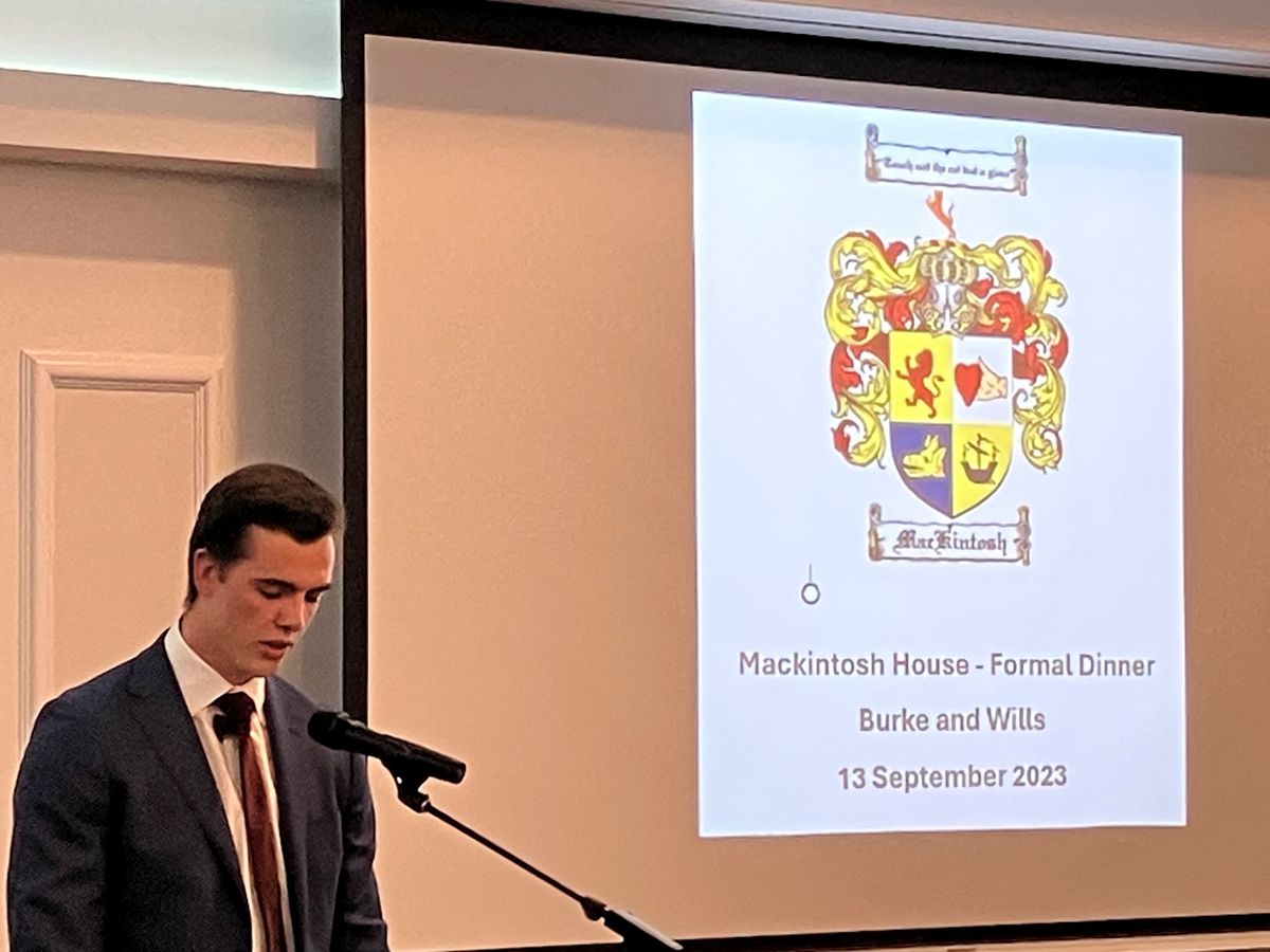 The Men of the Manor dressed with class in their best jackets and boots for the Mackintosh House Formal Dinner. The boys had a great time enjoying bougie food, drinks and the company of friends and family. A final farewell was wished to the incredible Year 12s of 2023 by the upcoming leaders of Mackintosh House. Each Year 11 boarder gave a speech to recognise each Year 12 boy and their contributions to the House, their achievements and their ambitions for the years to come. We were blessed with a special guest, the father of House Captain, Clancy O'Connor and a Toowoomba Grammar Old Boy, Rick McCosker, to provide us with some words of experience and advice before concluding the evening with a toast to Year 12.