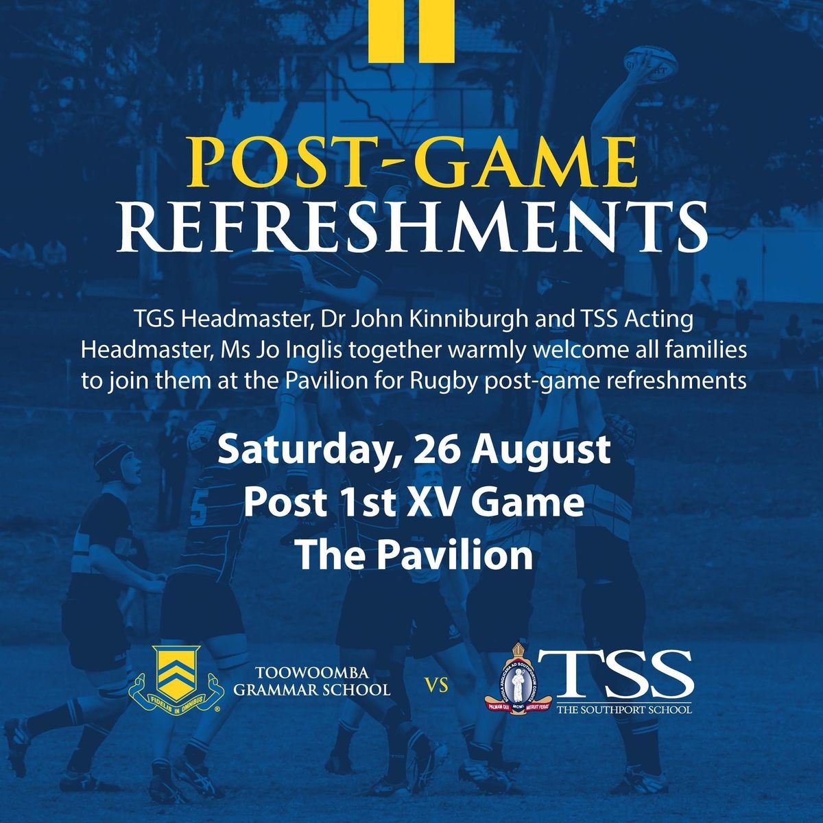 The luncheon was followed on the Saturday by the important O’Callaghan Cup fixture between Grammar and Downlands College. Aside from the chilling wind, it was another exciting day that provided plenty of entertainment for players and spectators alike. It was a pleasure to see so many boarding families there supporting their sons. I particularly want to thank the families that travelled interstate from the Territory and South Australia as well as Mr Nehemaiah Naris who travelled all the way from Papua New Guinea to watch his sons play on the day!
