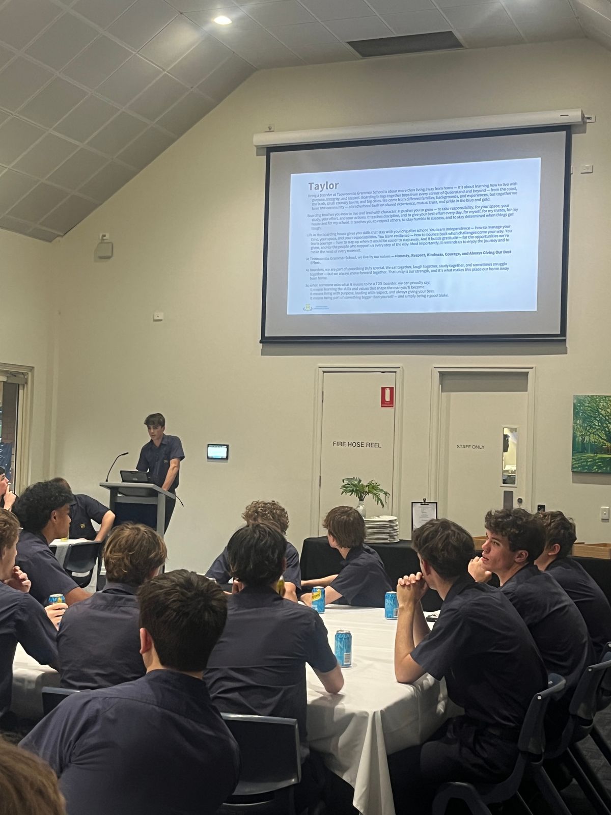 Our Year 11 boys joined peers from across all Houses for the annual Leadership Dinner, marking the beginning of their senior leadership journey for 2026. The focus of the evening was to define what it truly means to be a TGS boarder. While many Houses reflected on the School pillars, the Taylor boys chose to express the feeling of boarding life through a statement that captured both the spirit and purpose of being a boarder at Grammar: